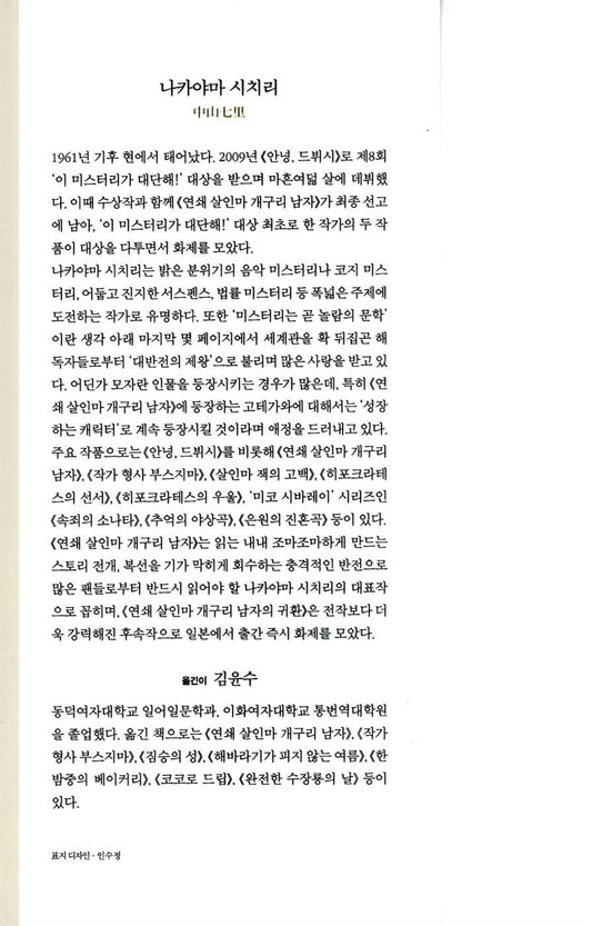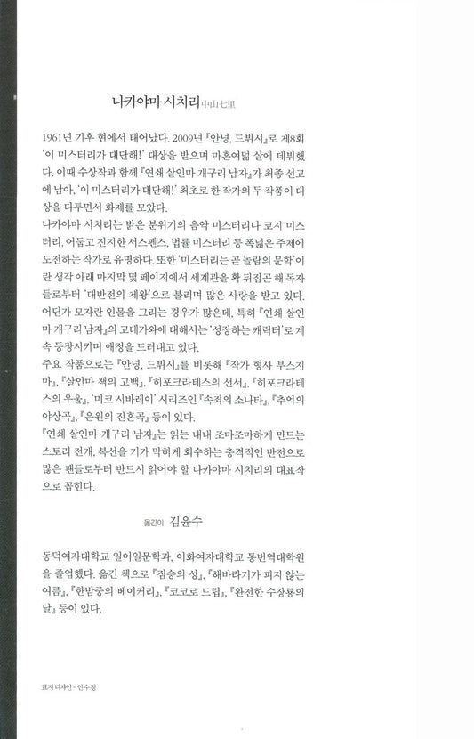 RENZOKU SATSUJINKI KAERU OTOKO by Shichiri Nakayama, Korean Edition