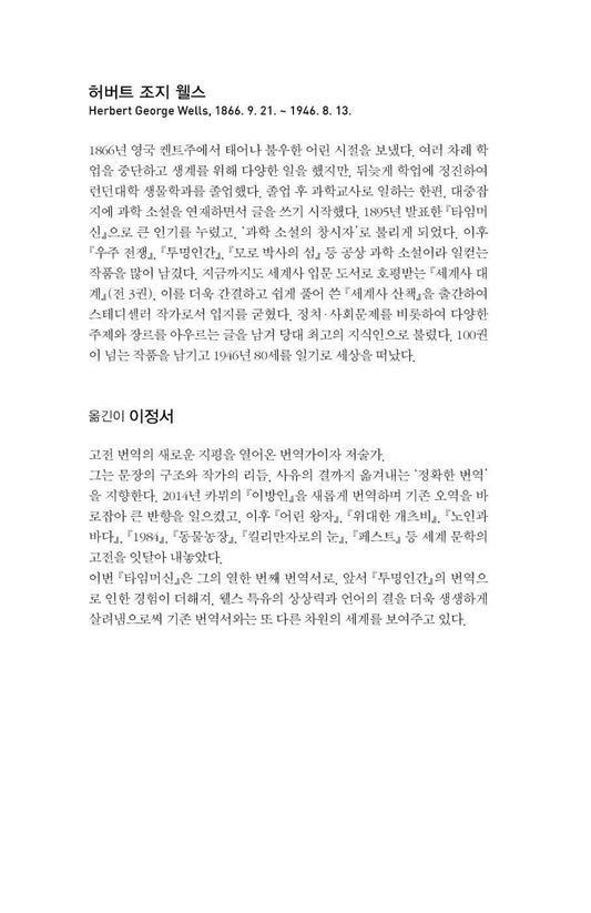 The Time Machine by H. G. Wells, Korean, 타임머신, 허버트 조지 웰스