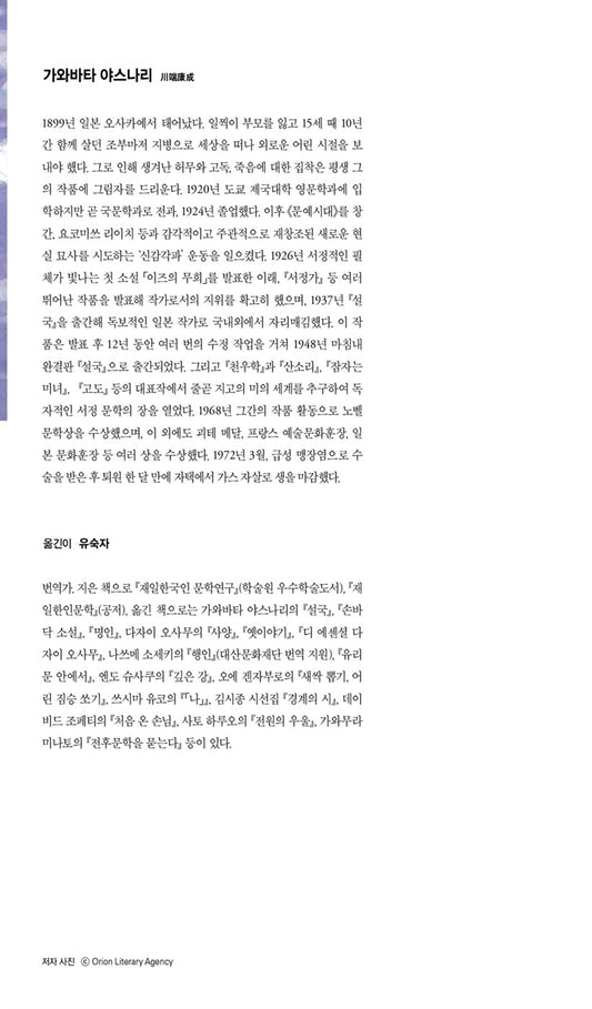 Snow Country by Yasunari Kawabata, Korean Book, Minumsa World Literature 61