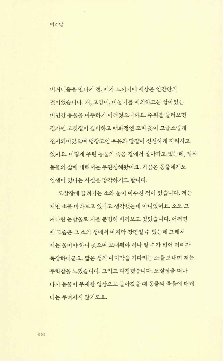 동물의 고통을 외면할 수 없어 비건이 되었다.