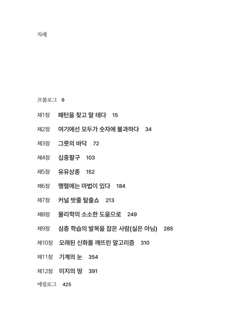 이 책에서는 수십 년간 “기계 학습machine learning” 연구자들에게 활력과 흥분을 선사한 정교한 수학 원리와 알고리즘을 설명한다. 기계 학습이라는 방대한 분야에서 구사하는 알고리즘에는 비교적 간단한 수학이 쓰인다. 수백 년을 거슬러 올라가는 이 수학은 고등학교나 대학 저학년 때 배우는 것들로, 선형 대수, 미적분, 베이스의 정리, 가우스 분포(및 종형 곡선) 등이다. 이 책은 기계 학습 분야를 떠받치는 핵심적 수학 개념이라는 렌즈를 통해서, 로젠블랫의 퍼셉트론에서부터 현대의 심층 신경망(인공 신경세포라는 연산 단위의 정교한 연결망)에 이르는 여정을 들려준다. 1950년대의 비교적 단순한 개념을 이해하면서 수학과 친숙해진 뒤에는 조금씩 난도를 끌어올려 오늘날 기계 학습 시스템을 떠받치는 전문적인 수학 원리와 알고리즘을 살펴본다. 이 과정은 우리가 기계에 불어넣는 어마어마한 힘을 이해하는 데에 필요한 최소한의 이론적, 개념적 지식을 펼쳐 보인다. 학습하는 기계의 작동원리와 그 바탕을 파악할 수 있도록 돕는 이 책을 통해서 독자들은 비로소 AI의 정체를 이해하고 AI로 가득해질 미래를 자신 있게 맞이할 수 있을 것이다.